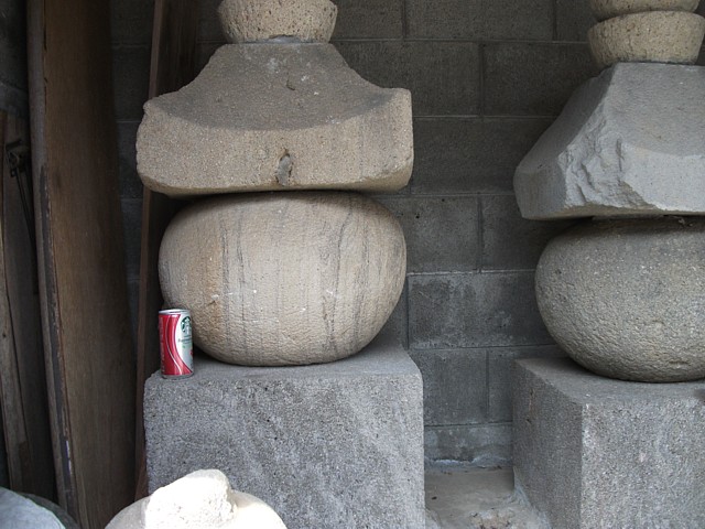 左端の塔のみ材質と笠の形状に差異が見られる。造塔の年代が異なるのだろうか。