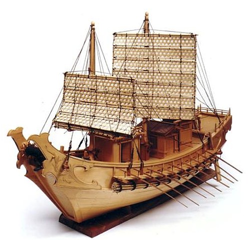 遣唐使船の推定全長は30mで巾は8m、帆柱は2本で風の状態により櫓も併用した。
