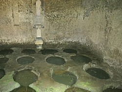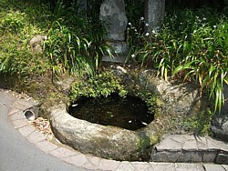 右: 山門に続く石段の右手に残る「鎌倉十井」の一つ・底脱の井(そこぬけのい)。顕時も連座して下野蟄居となった。剃髪した千代能(法名は如大禅師無着)が海蔵寺の井戸で水を汲んだ際に水桶の底が抜け、