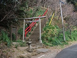 鎌倉将軍(実朝か)が病床で季節外れの青梅を欲しがった時、何処を探しても見付からなかったが、この祠の前だけに青梅が実っていた。
