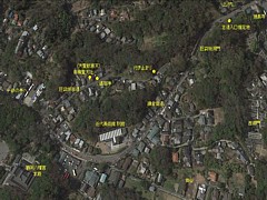 右:八幡宮上空から 巨福呂坂周辺の鳥瞰     画像をクリック→拡大表示