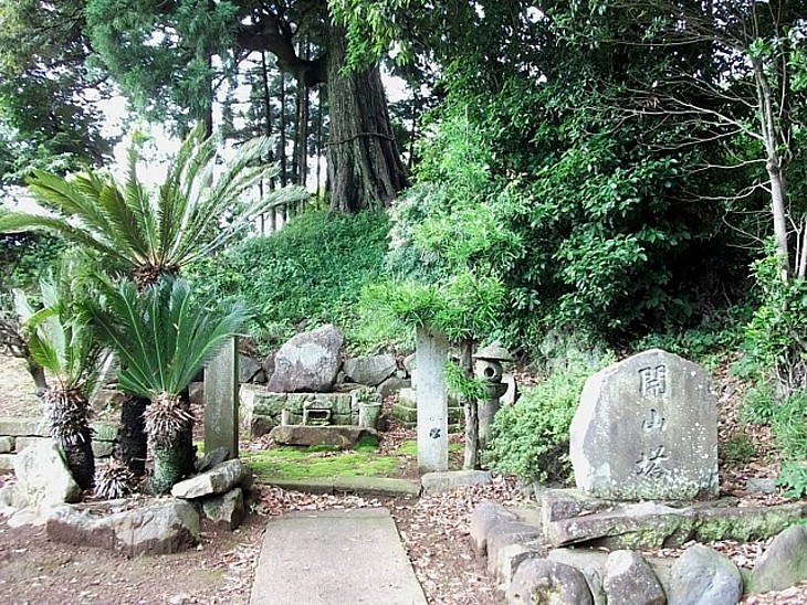 開山塔背後の椎の木は樹齢800年、国清が生きた時代には既に大木だった事になる。