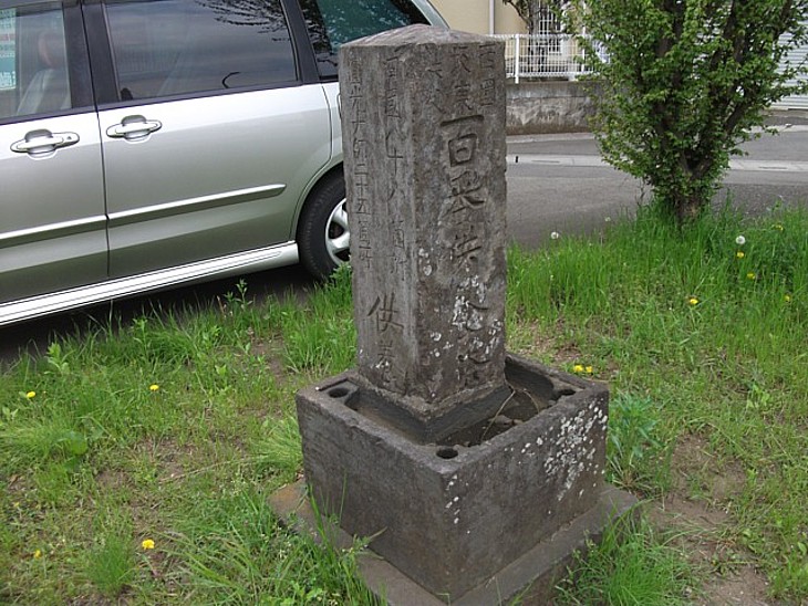 交差点南側の石塔の一つには「百番供養塔」などと彫ってあるが詳細は判らない。