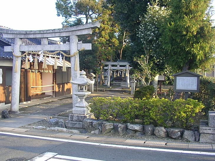 琵琶湖大橋の近く、勾当内侍を祀る野神神社。10月9日前後に例祭の城門祭(別称きちがい祭)が開かれる。