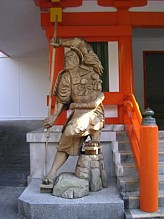 左: 駐車場から神門に向う途中にある神宝館横の弁慶像。熊野の伝承では速玉大社に仕えた鈴木一族の出身。平泉ではなく、行家と共に熊野で追討