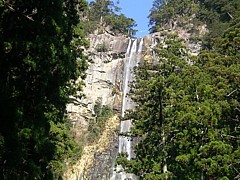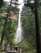 右2枚: 那智の滝遠望。落差は133m、一段で落ちる滝としては落差日本一らしい。自然の景観と同時に那智大社の御神体である。