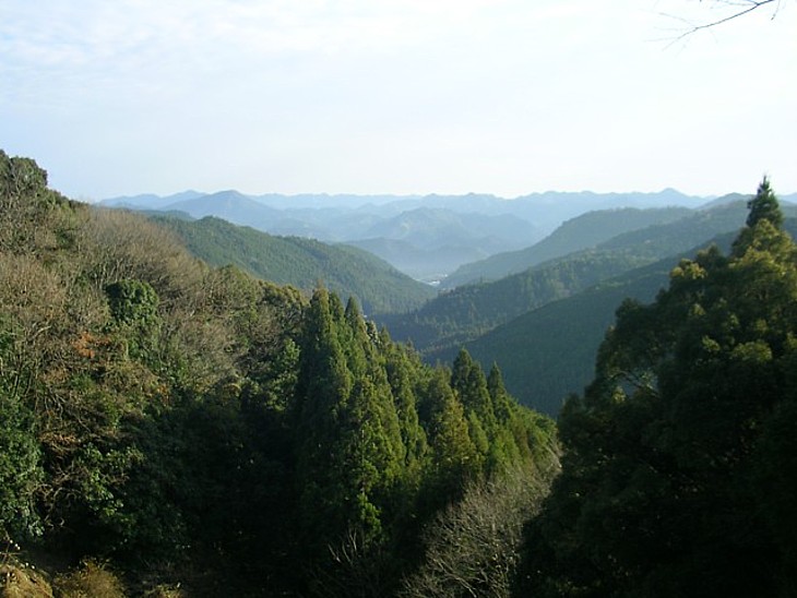 ここで本宮を遠望し伏し拝んだのが名前の由来と伝わる。中央に薄白く見える部分が昔日の本宮・大斎原。