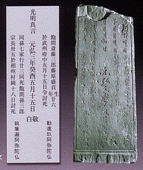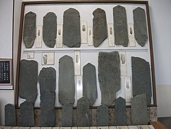 上: 板碑の様式は全国に分布しているが、主として関東地方・特に鎌倉武士が本領としていた地域の出土が多い。作成は鎌倉時代〜室町時代に集中し、