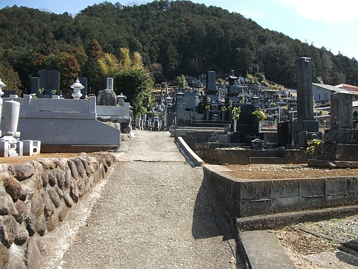 背後の山に向って墓地が広がる。元々は真言密教、天正十一年に曹洞宗に改めている。