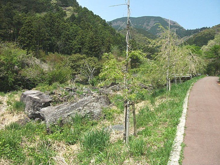 一説にトイレ棟の500m上流が堀口合戦場跡で、かつては数基の五輪塔があった、と。