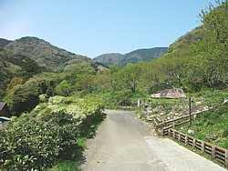 左: バス通りが幕山に向って緩やかに登る。周囲には静かな環境を生かした民宿や旅館が建ち並び、別荘や立派な保養所も点在する。