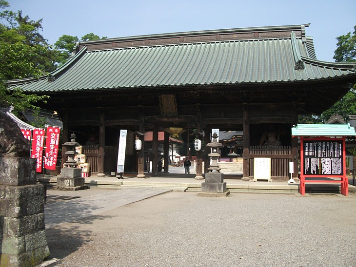 仁王門。当初の創建は万治元年(1658)、明治24年に台風で倒壊し、27年に再建している。