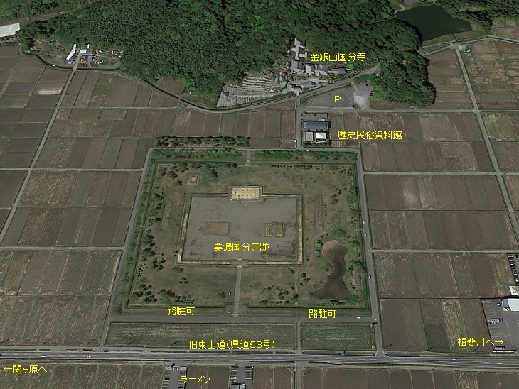 美濃国分寺の2km北には朝長を葬った円興寺、約3km東には杭瀬川が南北に流れる。