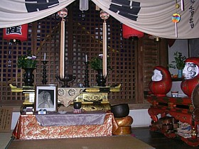 に至り、頼政の子孫を称する松平輝貞 (徳川綱吉と吉宗の側近で上野国高崎藩主) が資金を提供して頼政堂を新築し、頼政と菖蒲の前の木像を安置した。