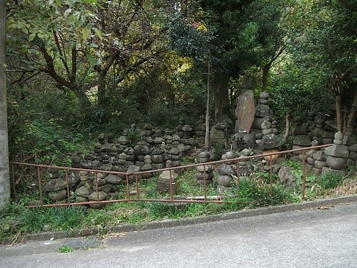 一帯に散乱していた墓石を集めたらしいが、フェンス用に置いた錆び脚立が何とも寂しい。