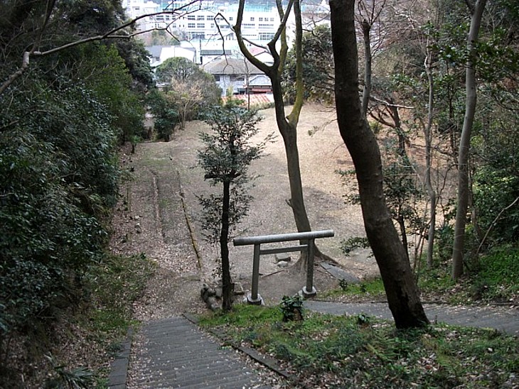 廣元廟所の石段から義時法華堂跡の平場を。すぐ下には大倉幕府跡の清泉小学校。