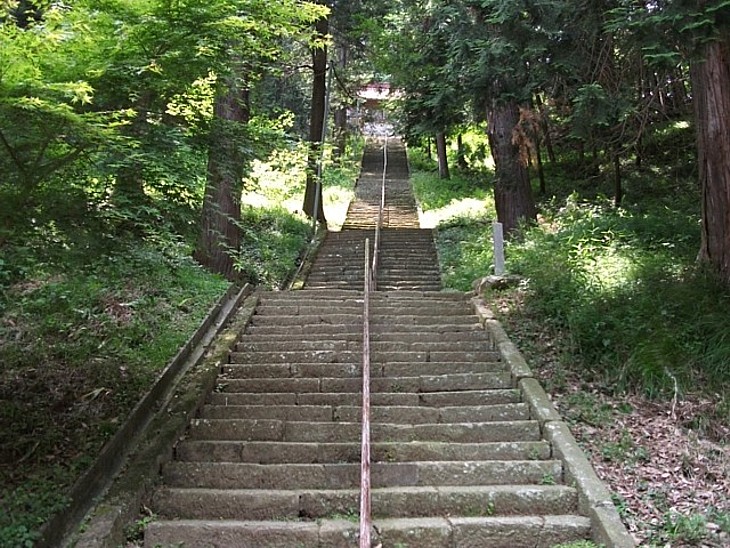 舞殿の平場から本殿までは急な石段を約100m登る。手摺りはあるが少々息が切れる。