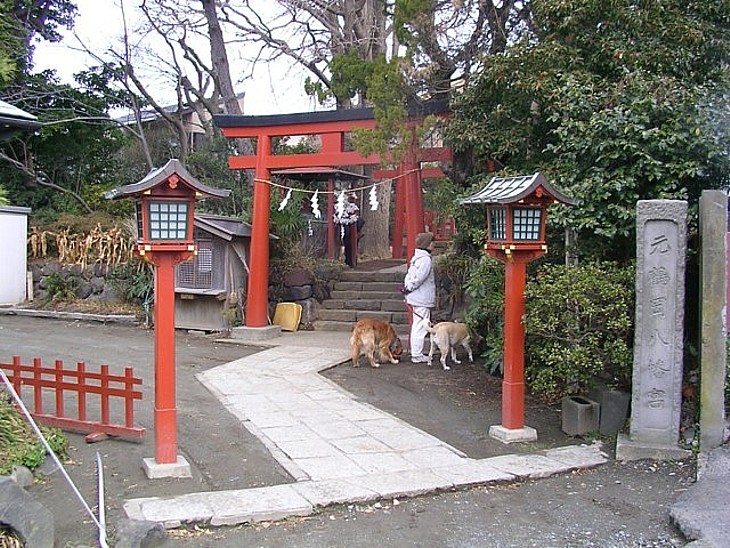 見過ごすような佇まいだが創建は康平六年(1063)、鎌倉に現存する最古の神社である。