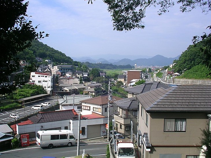 墓所から南の韮山方向を撮影。右は葛城山だろうか、遥か遠くに天城山系が連なる。