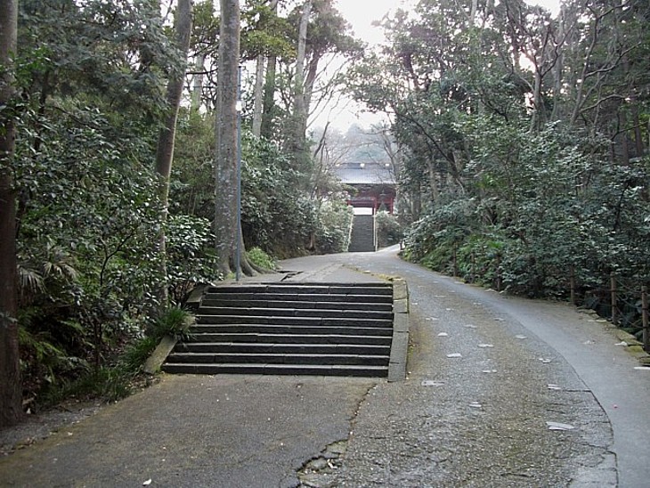参道を進むと鎌倉有数の静かな境内が広がる。本堂は左の高み、坂上の石段先がニ天門。