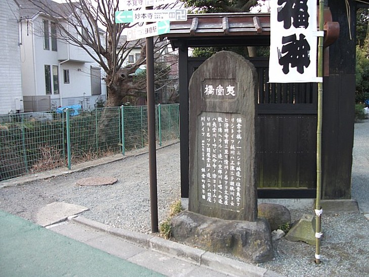 妙本寺参道前を流れる滑川の右岸、本覚寺山門の前には夷堂橋の碑が建っている。