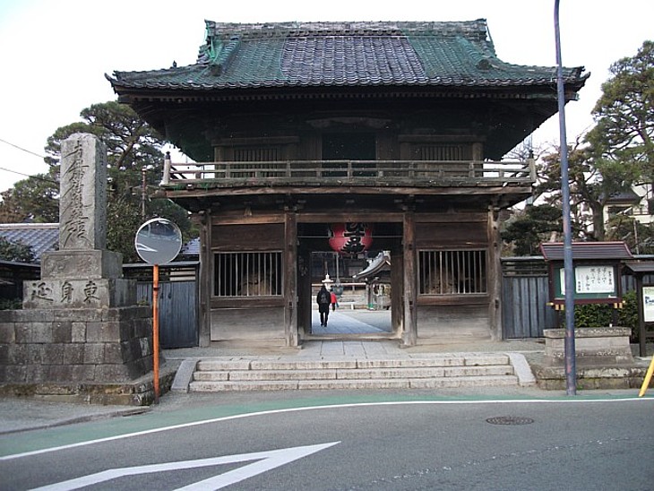 滑川を挟んで妙本寺と向きあう妙厳山本覚寺の山門。小町大路と名越には日蓮宗が多い。