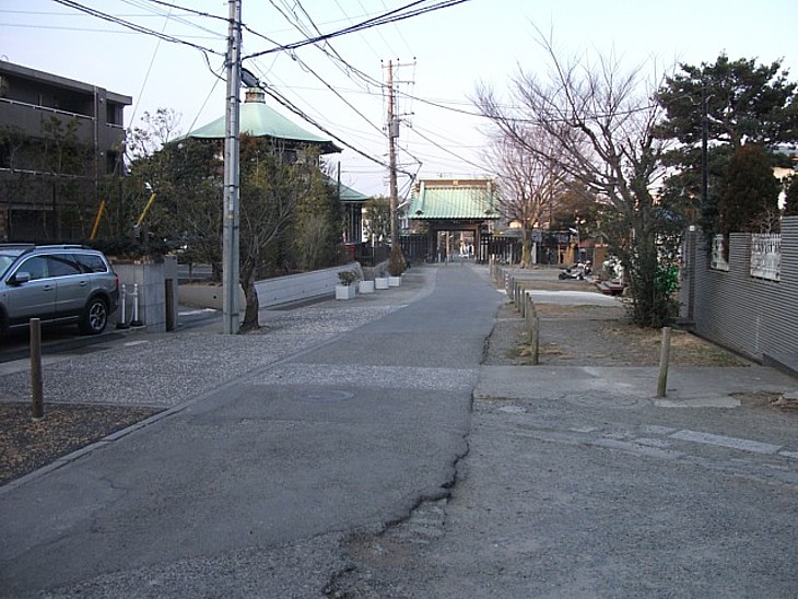 参道の途中から山門を振り返る。撮影位置の右側路地を進むと蛇苦止堂に至る。