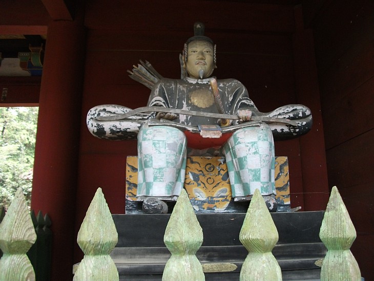 神門の両袖には与一像が祀ってある。これは右側、白髪になった与一像。江戸期の作か。