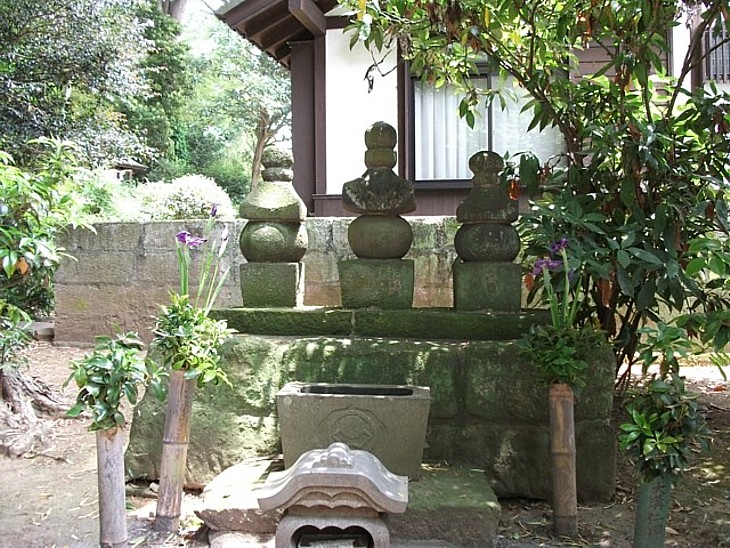 中央に四郎忠常・左に五郎忠正・右に六郎忠時の墓石。詳しい来歴は不明である。