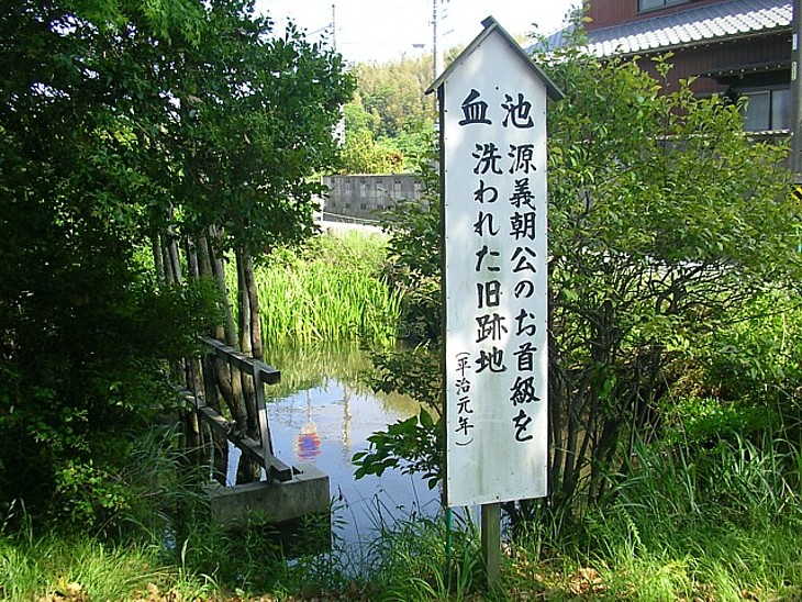 義朝の首を洗った池の旧跡。史跡には良くある話で、それほど信頼できる伝承ではない。