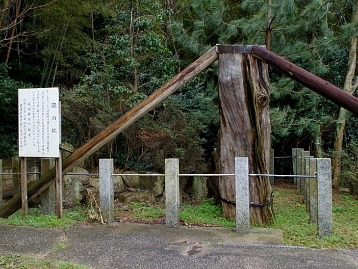 長田屋敷の跡から100mほど南の山裾、伝・長田入道を処刑したとされている「磔の松」の残骸。