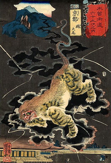 歌川国芳 木曽街道六十五次之内 京都 鵺(ぬえ) 御所に現れたから京都=鵺(ぬえ)、らしい。