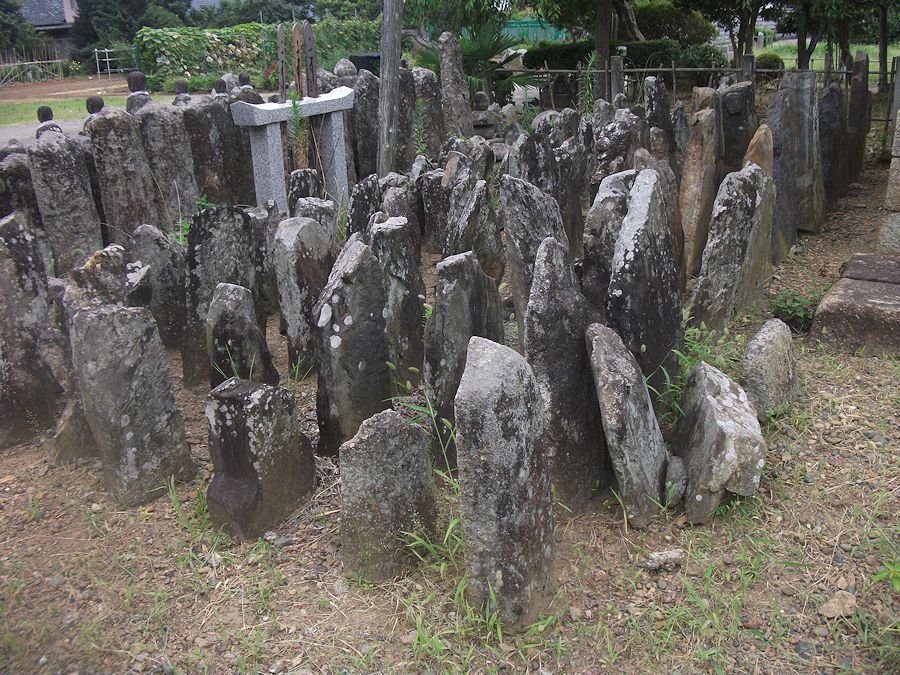 寺域は広く、各所に古い五輪塔や板碑などが集積され、何となく凄然とした雰囲気を醸し出している。左側画像の裏の竹藪の横に