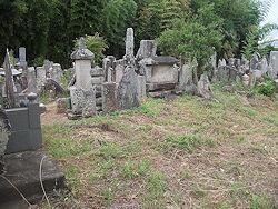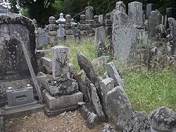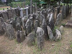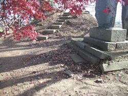 左: 小田城址から5km弱北西の斜面に残る 多気太郎義幹 の墓所。当初は佐竹氏と共に知行国主だった平家に従い、治承の戦乱後は 頼朝 に臣従した後に
