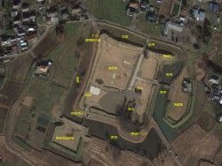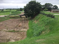 中: 部分的に溜水が見えるだけで現在は四方とも空堀状態になっている。元々は周囲を湿地帯に囲まれた水城(忍城に近い)状態だったらしい。