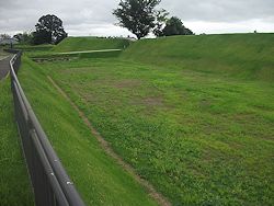 跨いで二つに分かれていた可能性もある。堀の深さは現在より2mほど深く、底に凹凸を設けた