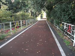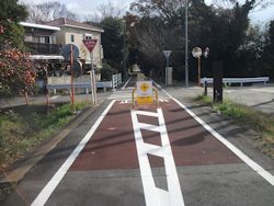 廃線跡を利用したもの。線路は小田城址のど真ん中を突っ切っていたが、さすがに自転車道路は城址の西側を迂回して造られている。