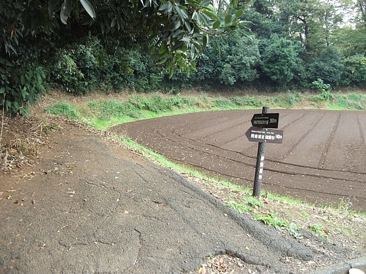無量寺右手から墓所へ。道標は360mだが実際は約600m、要所には案内表示がある。