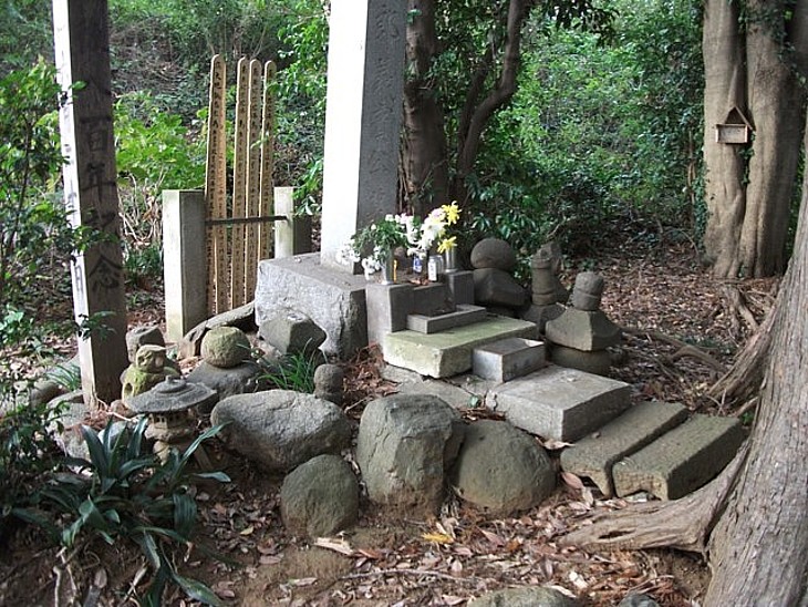 農道下に数基の五輪塔が散乱し中央に標柱が建つ。墓の詳細は不明、管理状態は悪い。