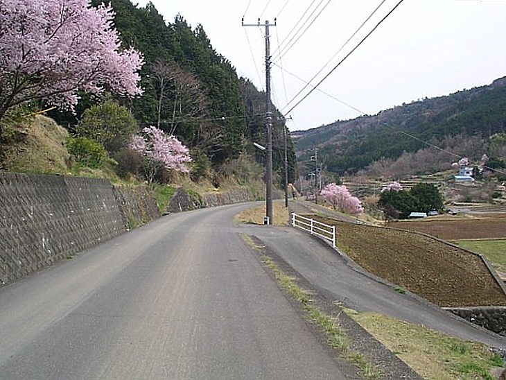 修禅寺から奥の院に向う早春の道。石碑を辿って奥の院まで歩く日帰りツァーもある。
