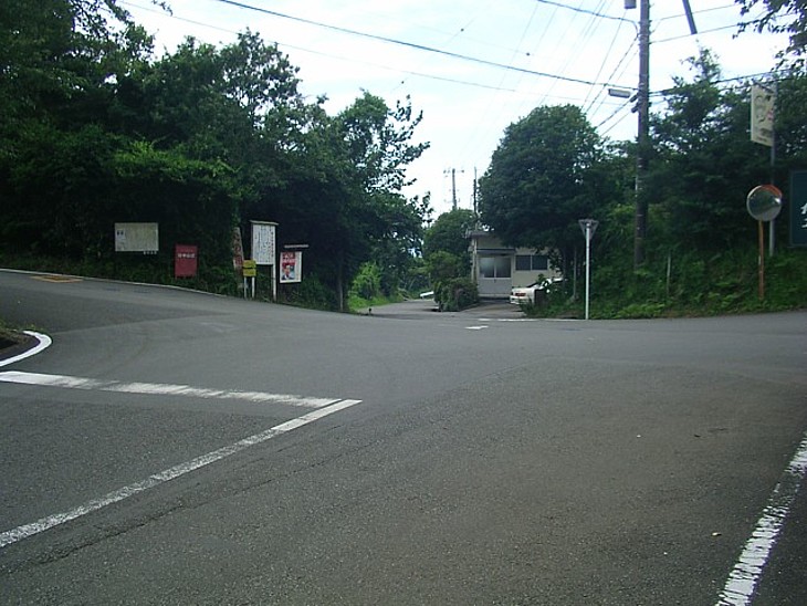 女塚の辻。手前は蕎麦の名所・浮橋へ、左は亀石峠、右は韮山、直進は宗光寺地区。