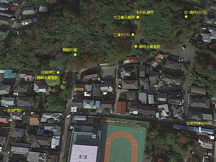 義時法華堂跡・頼朝の墓・白旗神社の周辺、大倉山の鳥瞰