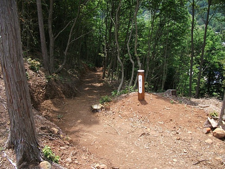 平場から虎口を撮影。攻城戦のキーポイントでもあり、両側とも急傾斜の狭い道だ。