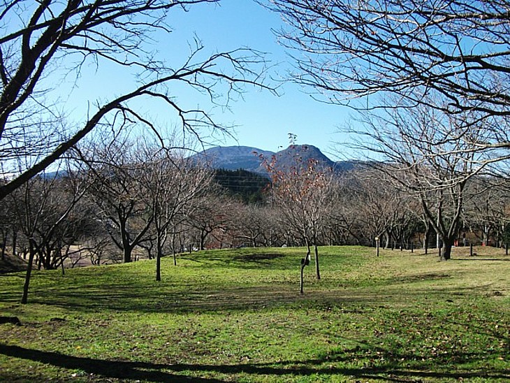 高台からは矢筈山(816m)と遠笠山(ゲンコツ山、1197m)、遠くに万二郎岳(1288m)が見える。