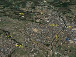 佐藤基治 は現在の飯坂温泉街西の舘山 (たてのやま・230m)山頂の大鳥城に本拠地を構えていた。南に小川、東に摺上川 (すりかみかわ)、北に赤川が流れて天然の堀を