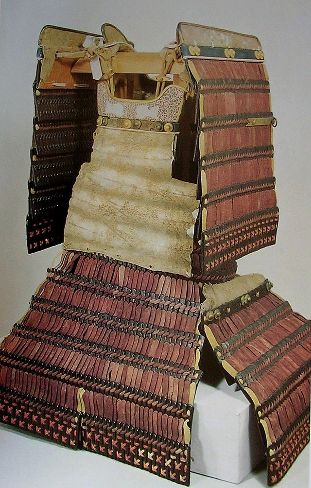 国宝 紫革威鎧   鎌倉時代初期の作で平安時代の貴族的な趣を伝える、とか。