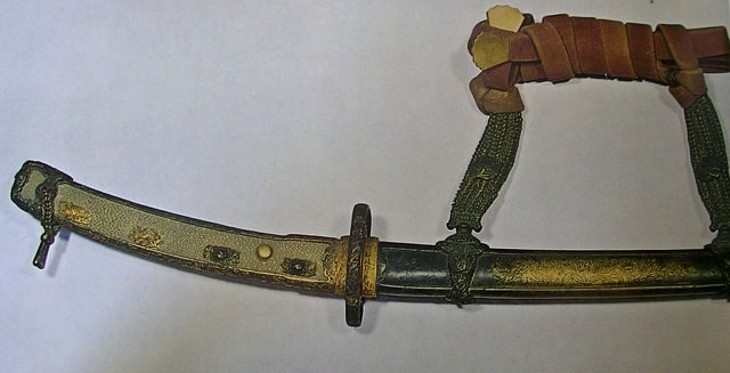 国宝 牡丹唐草文兵庫鎖太刀拵 鎌倉時代の作で護良親王の奉納と伝わる。