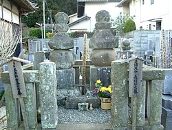 一説に、左の墓石は多々良三郎ではなく三浦義明の妻(秩父重綱の娘で