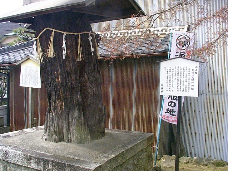 鏡神社の参道に残る烏帽子松の残骸 。参拝の折に義経が烏帽子を掛けたと伝わる。