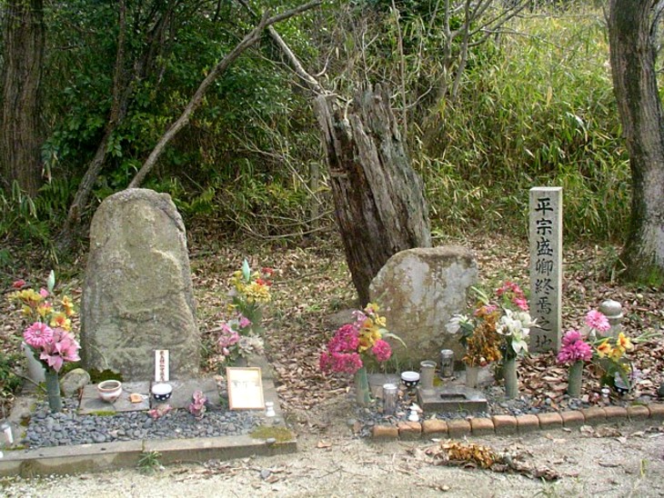 平宗盛卿終焉の地。墓所そばの宗盛首洗池では以後は蛙が鳴かず、「蛙鳴かずの池」とも呼ばれる。